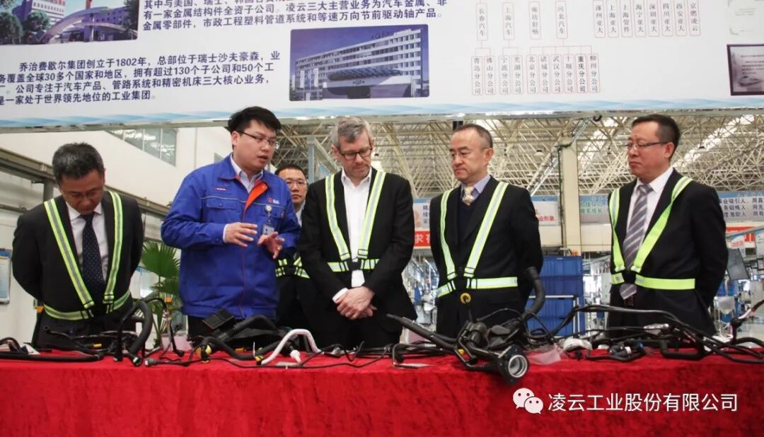 赵延成陪同JurgreWestermeier一行参观了河北亚大汽车管路公司、九游在线登录官网华北区制造分公司、九游在线登录官网驱动轴(涿州)公司和实验室。在现场,双方就新能源车市场领域的开发成果进行了详细的交流。